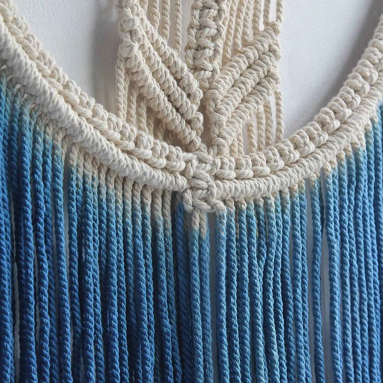 Beautiful Blue Tassle Macrame Wall Hanging Tapestry Hand